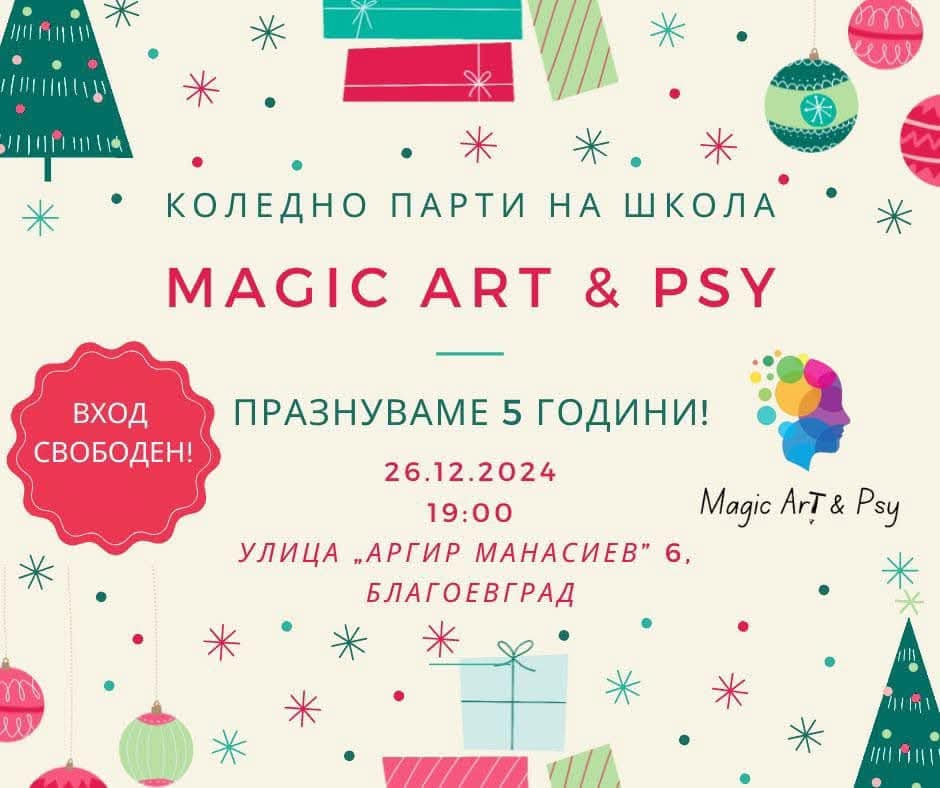 На 26 декември от 19:00 часа в Благоевград ще се проведе празнично събитие, посветено на 5-годишнината на Школа Magic Art & Psy.