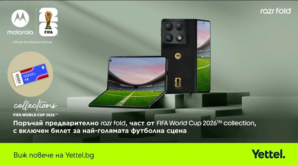 • България лимитираният модел Motorola razr fold, част от FIFA World Cup 26™ Collection, ще се продава само в онлайн каналите на Yettel между 6 април и 31 май 2026 г.