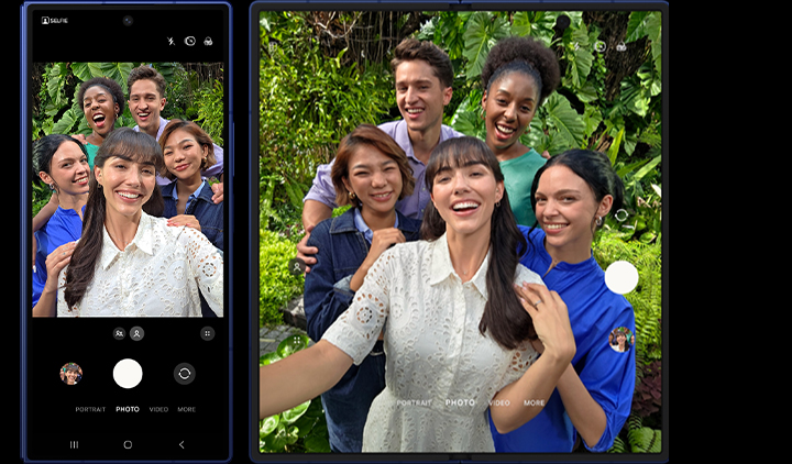 - Снимките с предната камера са 25% по-широкоъгълни и 2,5 пъти по-ясни при Galaxy Z Fold7 в сравнение с неговия предшественик.
