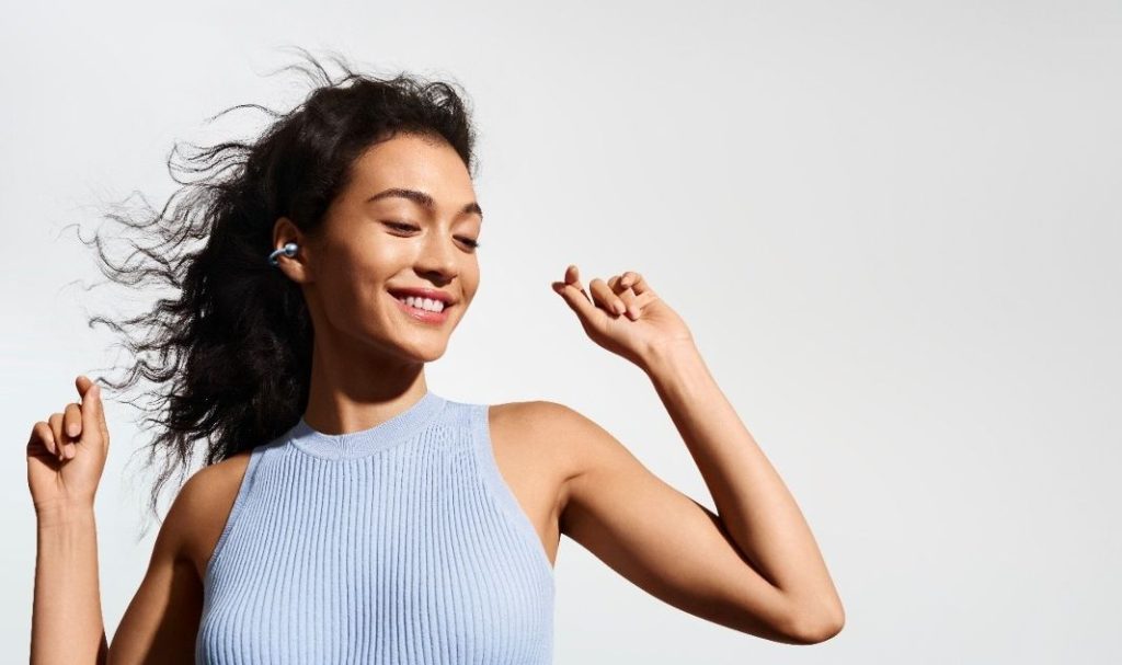 FreeClip 2 са не просто слушалки, а моден аксесоар. Те се предлагат в четири стилни цвята – Blue, White, Rose Gold и Black, всеки със собствен характер. Моделите Blue и White се отличават с деликатна текстура, напомняща микроскопични фини нишки деним, създаваща усещане за свобода и комфорт.