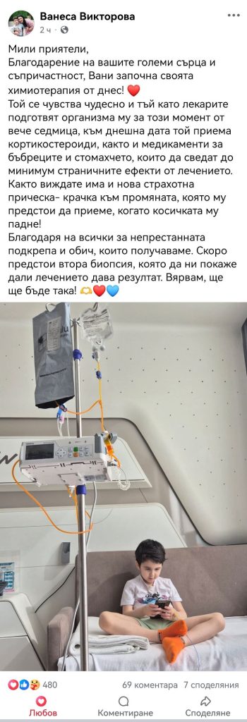 Добра новина сподели майката на малкия Вани от Благоевград. Детето вече е започнало своето лечение с химиотерапия, след като лекарите са подготвяли организма му в продължение на около седмица.