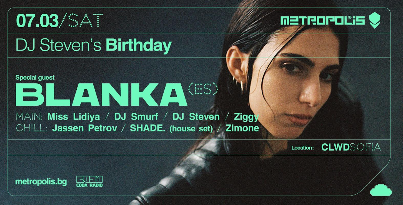 Събитието на 7 март ще бъде реализирано в две зали – хаус и техно – и ще събере селекция от артисти, сред които Miss Lidiya, Jassen Petrov, Smurf, SHADE, Zimone, Ziggy и специалния гост BLANKA. Форматът комбинира опита и традицията на Metropolis с динамиката на новото клубно пространство CLWD, което постепенно се утвърждава като сцена за съвременни формати и силна електронна програма.