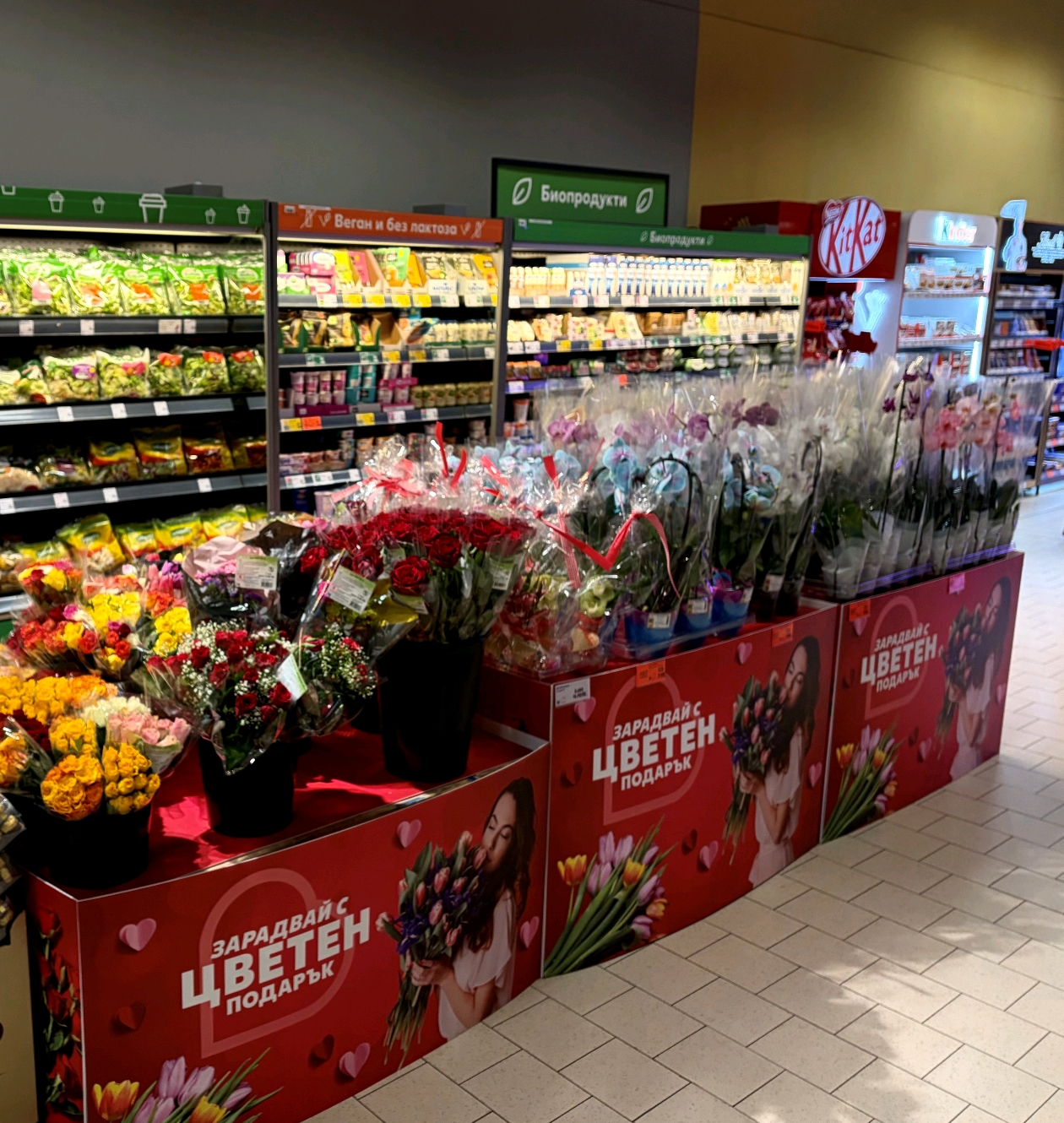 За всеки мъж, който иска да зарадва половинката си с красиви цветя, Kaufland България предлага изобилие от букети, стайни и градински растения. Сред предложенията тази седмица са роза микс за 3,21€/6,28 лв., миникаланхое в керамична кашпа за 2,29€/4,48 лв. и лилиум за 5,11€/9,99 лв. Миниорхидеята, която винаги е правилен избор, е на цена от 7,15€/13,98 лв. Букетите също са цветни и разнообразни, от класически букет от рози в различни цветове до композиции с лалета, фрезии, гербери и други. А за закъснелите на помощ идва автоматът за цветя пред филиала на ритейлъра в Младост, който е достъпен 24/7.
