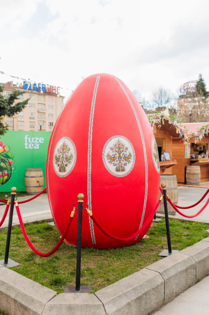 Фокусът тази година е впечатляващата арт инсталация – 3-метрово червено великденско яйце, украсено с българска шевица, което бързо се превърна в любима атракция за посетителите и един от най-сниманите символи. Яйцето носи послания за здраве, ново начало и връзка с българските традиции.