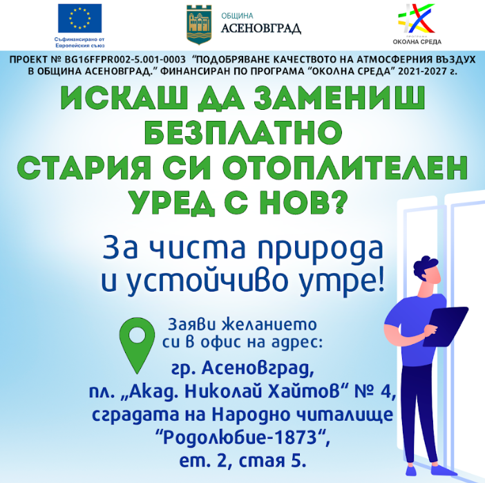 Продължава изпълнението на проект „Подобряване качеството на атмосферния въздух в община Асеновград“, финансиран по Програма „Околна среда“ 2021 г. – 2027 г.