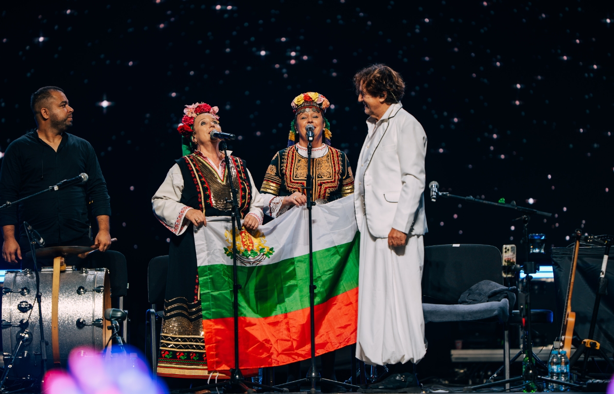 Неизменна част от неговите концерти вече три десетилетия са народните певици Людмила и Даниела Радкови. Техните гласове внесоха още повече емоция и топлина в спектакъла на всички българи, а за големия финал, заедно с Брегович, те развяха българския трибагреник от сцената.