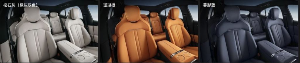 Xiaomi YU7 предлага три интериорни нюанса за избор на цвят: Pine Gray в светъл тон и Coral Orange и Twilight Blue в по-дълбоки нюанси. Всяка повърхност с висок контакт разполага със 100% мека на допир подложка със сертификат OEKO-TEX® Class 1 – отговаряща на строгите стандарти за безопасност при контакт с бебета. Седалките, обвити с кожа Nappa, се отличават с деликатно галеща текстура за първокласен тактилен комфорт.