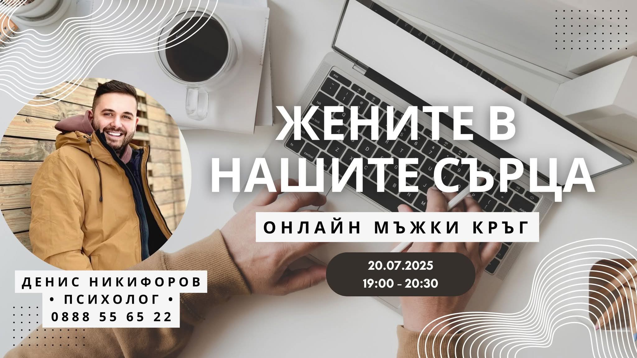 На 20 юли 2025 г. от 19:00 до 20:30 ч. ще се проведе онлайн събитие, насочено към мъжете, които търсят по-дълбока връзка със себе си и с жените в живота си. Под надслов „Жените в нашите сърца“, срещата ще се води от психолога Денис Никифоров и ще се състои в платформата Google Meets.