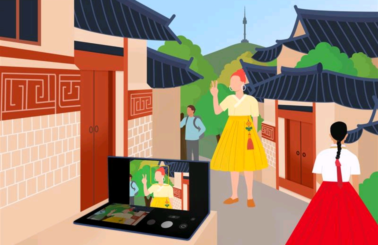 Първият ден започва в традиционното селище Букчон – перфектното място, където да кажеш „Здравей, Корея“ във влога ти. Забрави да прибереш статива ти в багажа? Няма проблем. Постави Galaxy Z Fold7 някъде, включи FlexCam, и той автоматично ще те центрира в кадъра с Auto Tracking, докато улавя фона с традиционните ханок къщи.