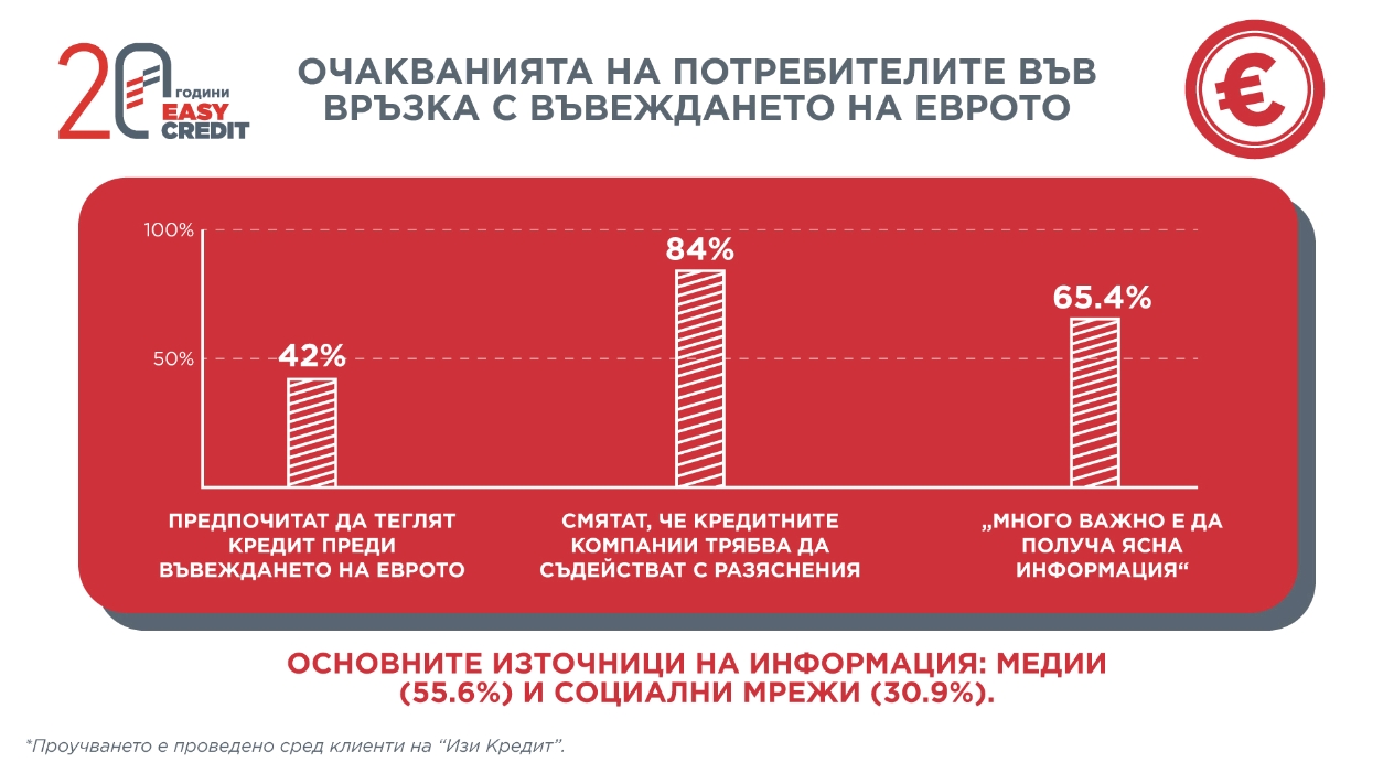 Според проучването 65.4% от анкетираните определят като „много важно“ да получат ясна информация за преобразуването на кредитите си, а 84% смятат, че компаниите за бързи кредити трябва да предложат допълнителни разяснения и съдействие. В същото време 42% от потребителите предпочитат да изтеглят кредит преди валутната промяна – в левове, което показва търсене на сигурност и стабилност в условията на промяна.