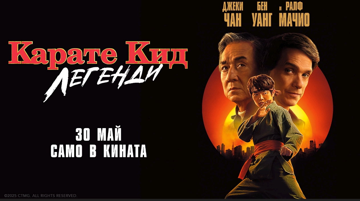 След близо четири десетилетия, в които вдъхновява поколения зрители, един от най-обичаните филмови франчайзи в историята се завръща с нова глава, носеща духа на оригинала и енергията на бъдещето. Карате кид: Легенди идва в кината от утре, 30 май, и с помощта на майсторите на бойни изкуства Джеки Чан, Ралф Мачио и изгряващата звезда Бен Уанг, отново ще ни обедини около вечните теми за менторство, чест, самодисциплина и цената на победата.