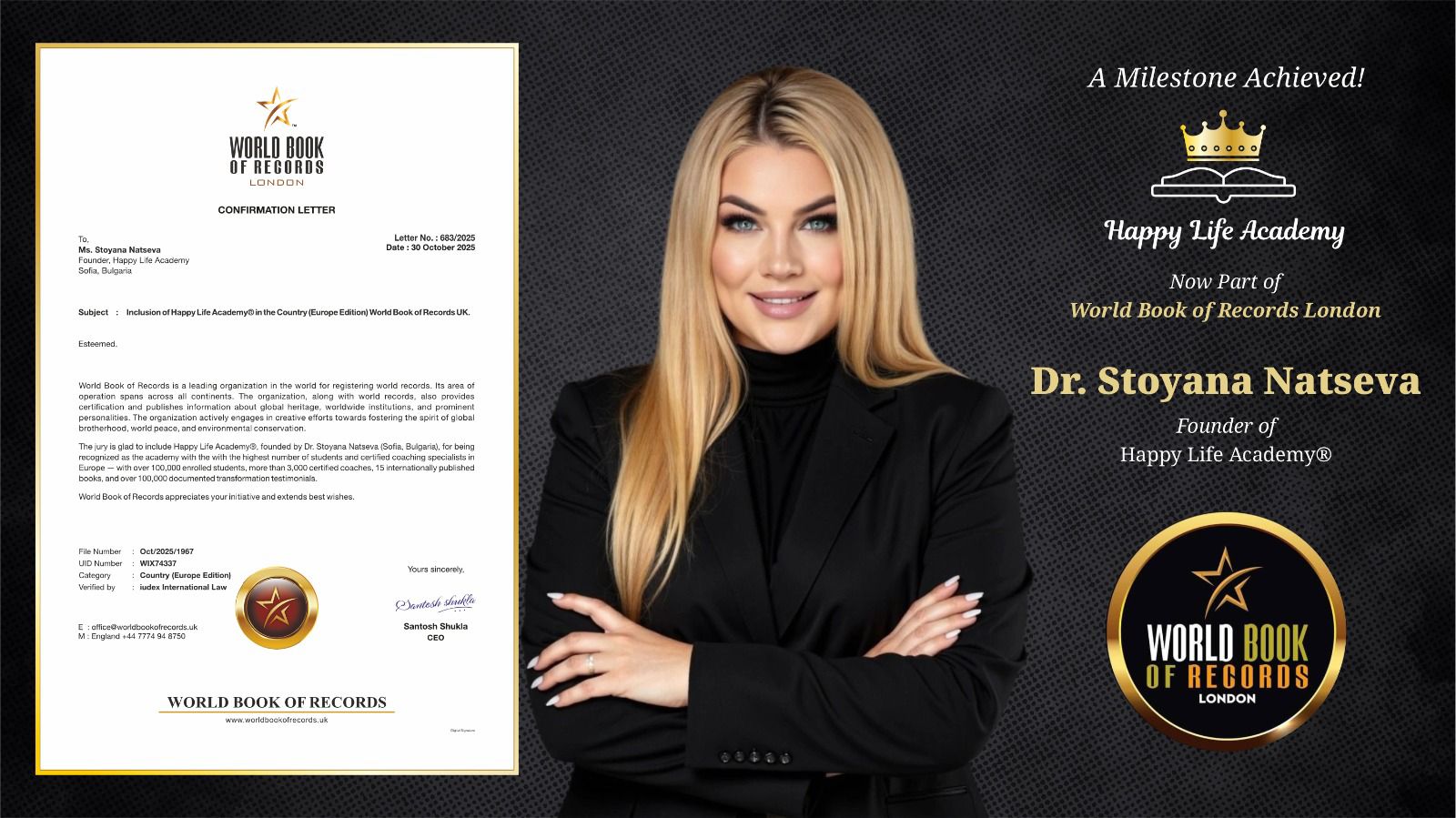 На 31 октомври 2025 г. Академия „Щастлив живот“ (Happy Life Academy®), основана и ръководена от д-р Стояна Нацева, беше официално вписана в World Book of Records – London (United Kingdom) с титлата: