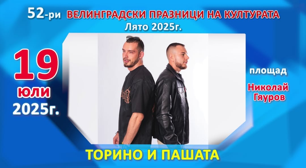 Гвоздеят на вечерта е концертът на хип-хоп дуета Торино и Пашата, който започва в 20:30 ч. Очаква се сцената да избухне с енергия и настроение, а организаторите обещават незабравимо шоу, което не бива да се пропуска.