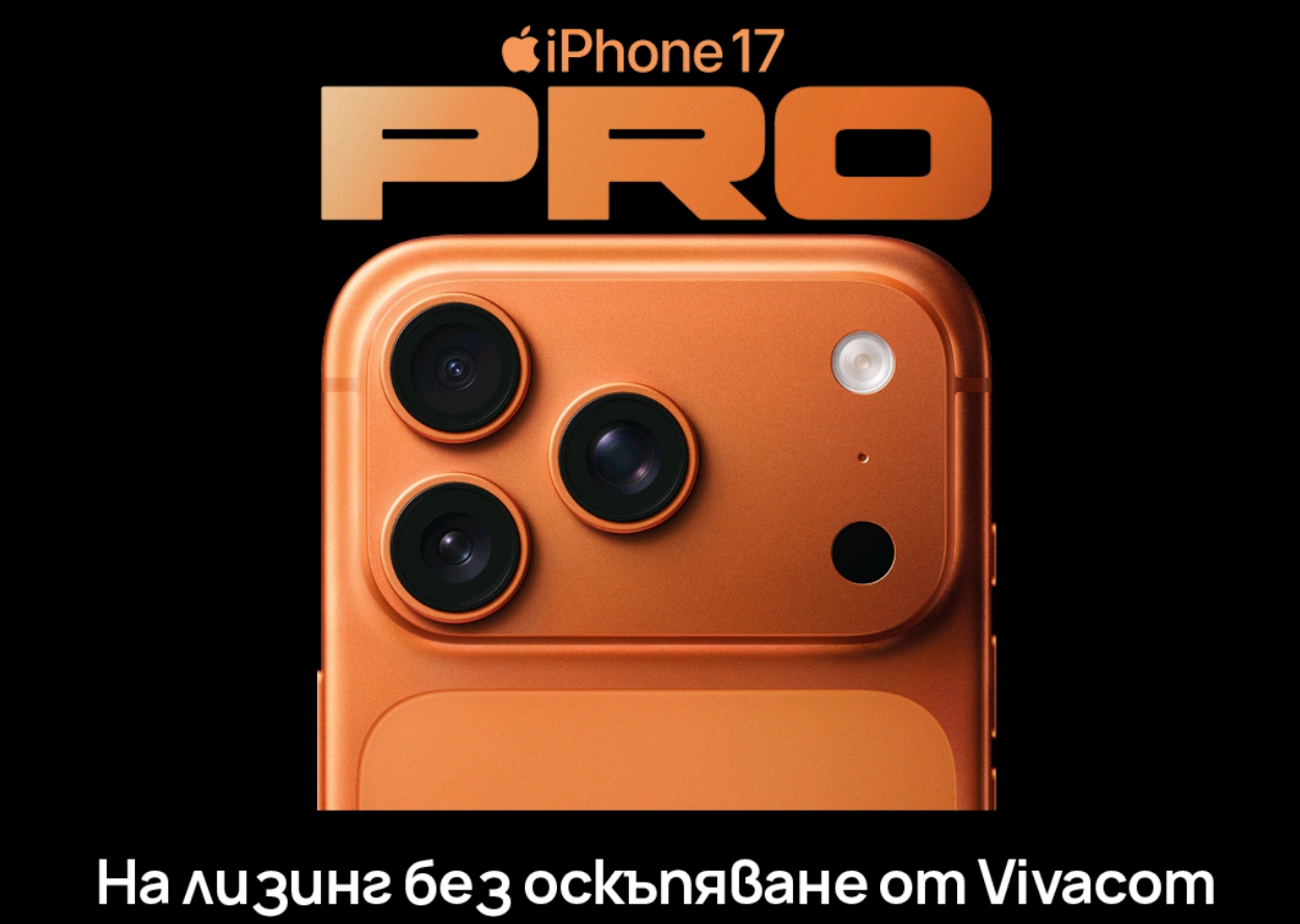 Vivacom стартира нова кампания с атрактивни условия за почитателите на Apple. От 24 октомври моделите iPhone 17 Pro, iPhone 17 Pro Max и iPhone Air се предлагат с 24 и 36-месечен лизинг без оскъпяване[1] в комбинация с план Unlimited 200 и Unlimited MAX. Офертата е валидна до 9 ноември 2025 г. и е достъпна както във физическите магазини, така и онлайн на сайта на телекома vivacom.bg.