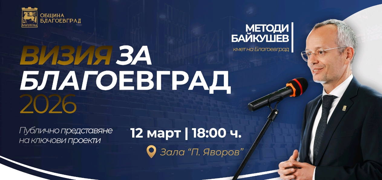 Събитието „Визия за Благоевград 2026“ ще очертае плановете на общинското ръководство за посоката на развитие на инфраструктурата на общината за подобряване на условията за живот и реализация на жителите на Благоевград.